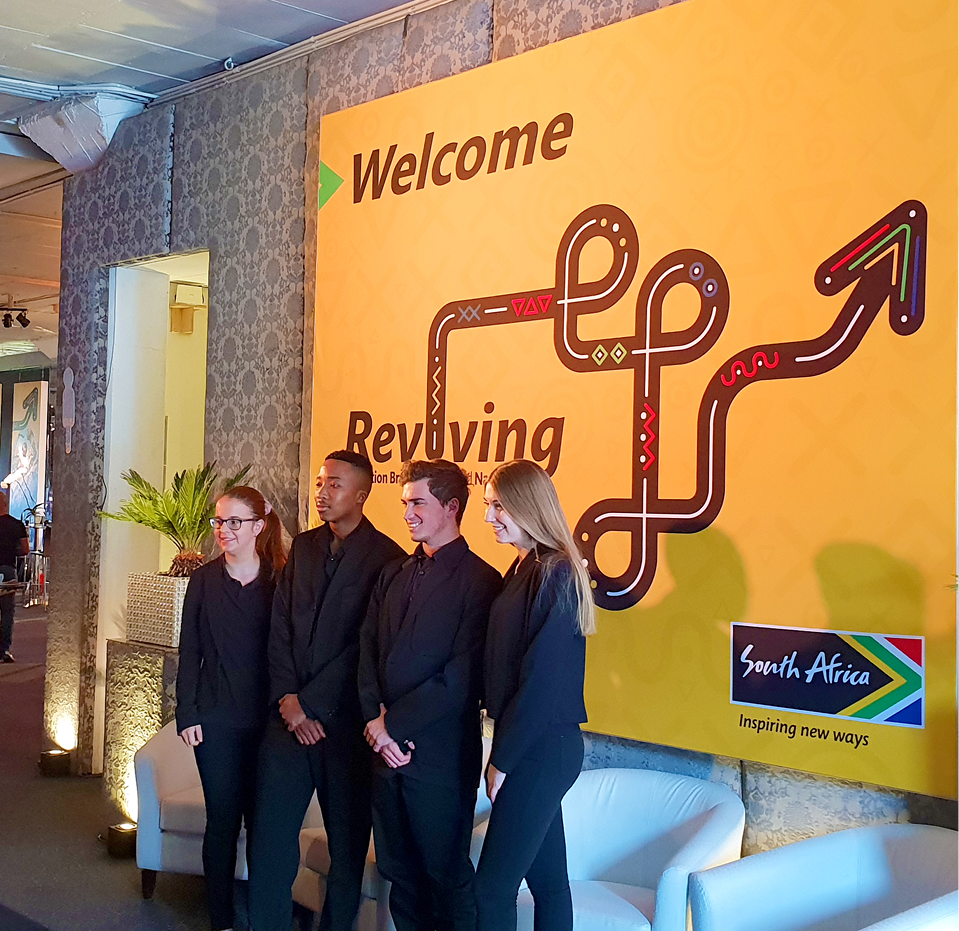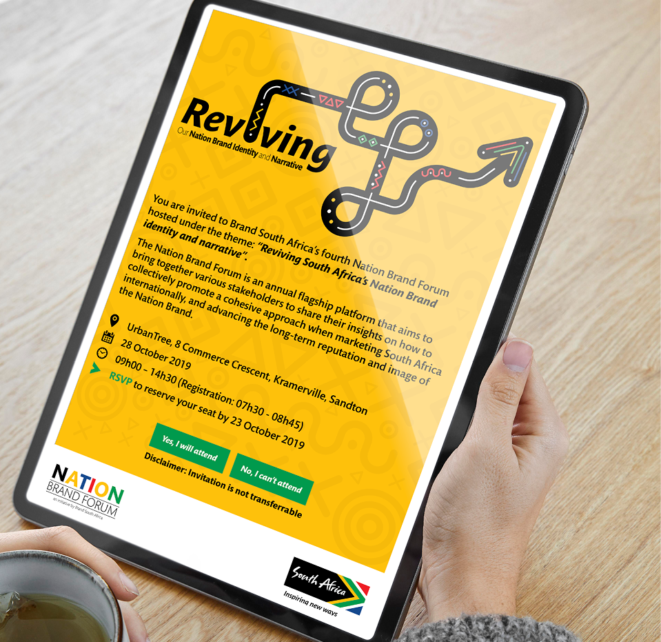 We received an exciting brief to create a brand identity for a flagship event called The Nation Brand Forum. The identity we developed was based on the pathway or path to reviving our country’s identity. The pathway showed the rigorous path travelled and the exciting forward projection and outlook. The creative was influenced by visual cues from the 11 cultures common in South Africa, to create a bold visual system that allowed for modular application.