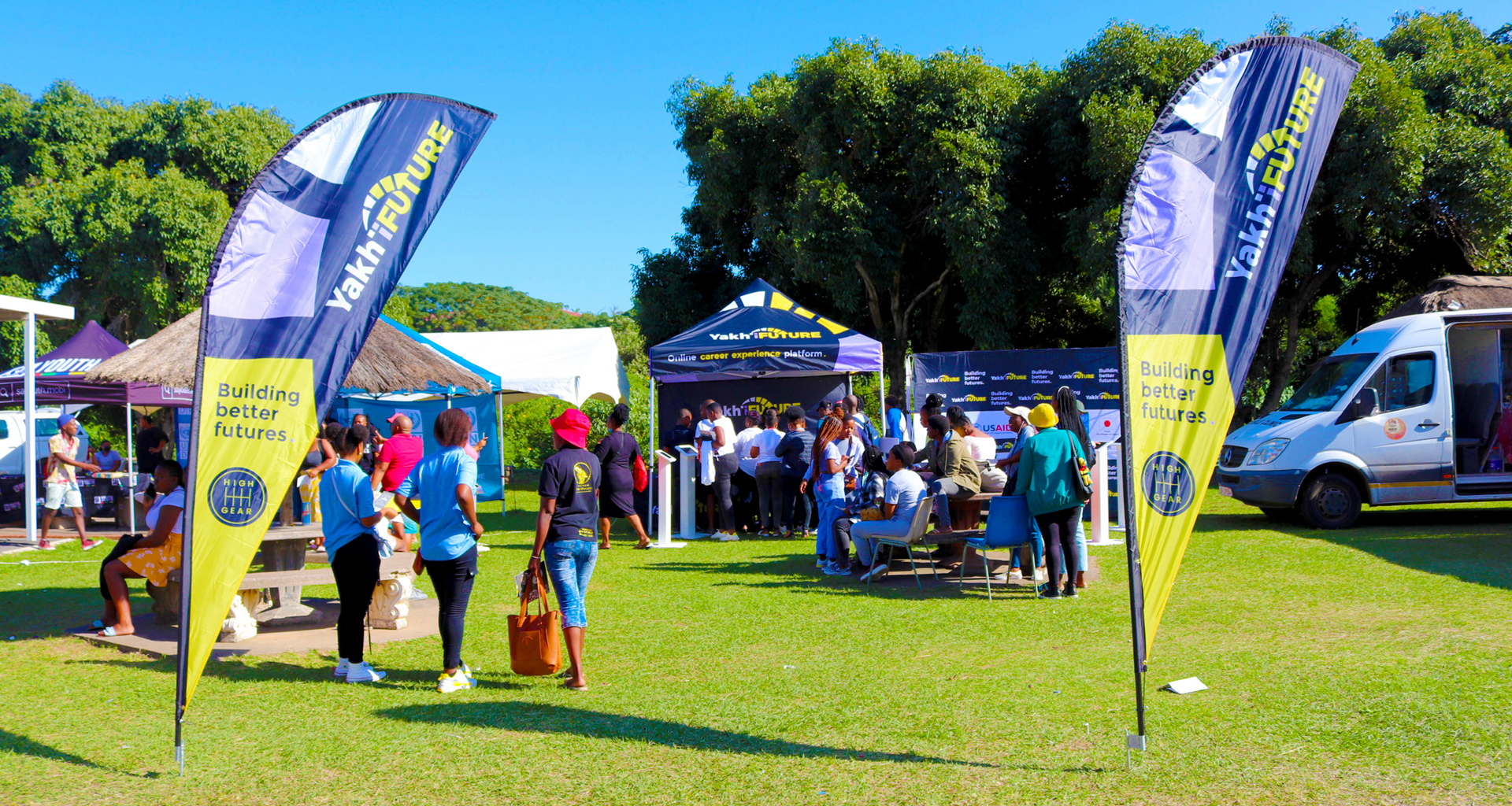 Yakhi'future is an online career platform developed for engineering students at TVET colleges. This tool is revolutionising how young people engage with knowledge from theory to practice. The platform gives engineering students insider info on different career pathways in the automotive manufacturing sector. We ran an on campus activation launch, enabling young people to explore, practice and learn more about the tool in a fun and interactive way.